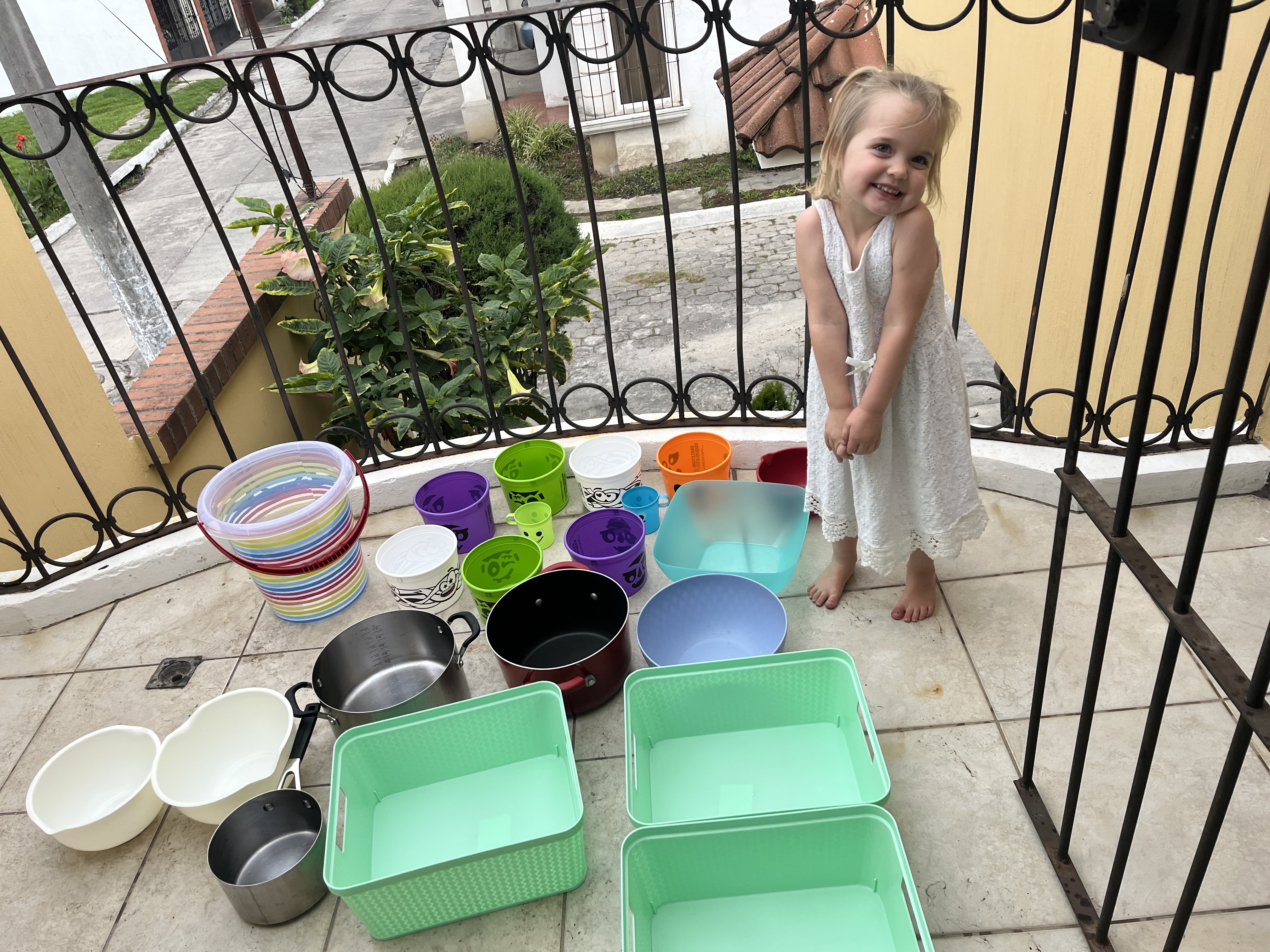 The girls and I did great the first two days without Tyler and without any extra water. We had plenty of drinking water already filtered, but were careful not to waste a drop. We ordered takeout, used paper towels as plates, and made it work! But by Tuesday evening, we were ready for Tyler to be home and help us carry the heavy 5 gallon jugs of water from the shop across the street so we could, you know, flush the toilets and wash some dishes. We thought the water would be fixed that first day. Then they discovered it was a bigger problem than initially thought, so it would be a few extra days. Then the neighbors (of our neighborhood and the one next door) needed to come to an agreement about the fix, so we waited more days. Then it was Sunday (today), and no one should work on a Sunday. And now we are (still) praying it will be any day now. The girls have been troopers! I have mostly been a trooper. I’ve had a few low moments, but with a bit of Tyler sarcastic jokes, I am staying positive and hopeful. Please pray for our attitudes to stay high despite the challenges of not having water. And please pray for the issue to be fixed soon.